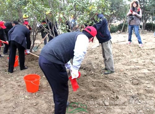 在活動現(xiàn)場,主持人介紹了植樹活動宗旨、植樹工作的安排后,到場的拱墅區(qū)政府領導、中國鐵建國際城副總經(jīng)理倪志宇相繼發(fā)表了各自的低碳宣言。接著,各位領導拿起工具親自培土、澆水,種下了一棵棵茁壯的桂花樹,期待花香滿溢,許愿綠樹長青。杭州市園林綠化工程有限公司項目部積極做好此次活動的配合工作,助中國鐵建植樹節(jié)活動成功舉辦。