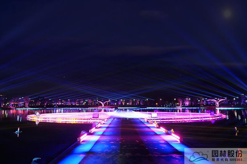 旨在打造成為川西最具規(guī)模、最具獨特創(chuàng)意的光影噴泉秀,結(jié)合現(xiàn)有水域,營造出清澈激靈動的特色。水秀的表演則以唯美靈動、色彩絢麗的表演配合水上透明舞臺上演員的輕歌曼舞,在空中光影形成的多彩穹頂?shù)沫h(huán)抱下,展示出一個美輪美奐的“天空之境”。結(jié)合本項目特殊的自然環(huán)境條件,如此有針對性的設(shè)計創(chuàng)意,有效解決了因大開闊的區(qū)域缺少高低層次,山體林木距離主秀區(qū)距離較遠帶來的暗夜壓迫感和孤寂感,實現(xiàn)了全視野、多層次的豐富絢麗夜游體驗。