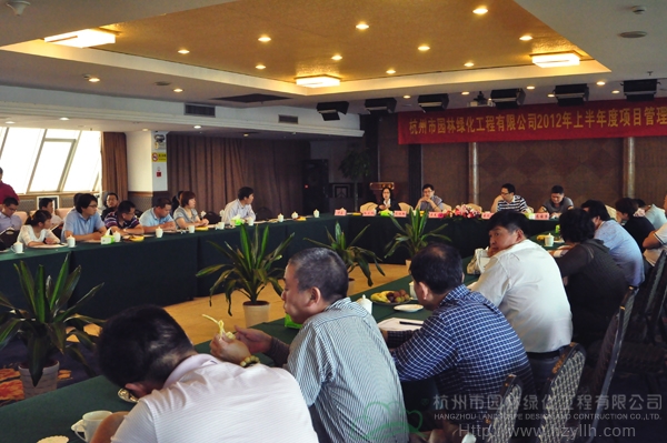 5月26日,杭州市園林綠化工程有限公司在田園賓館八樓會議廳召開了“2012年上半年度項目管理交流會”,市場部經理傅磊主持會議。各分公司、項目部及相關部門共六十多人參加了會議,董事長吳光洪、副總經理陳伯翔、總經理助理吳憶明等領導出席。